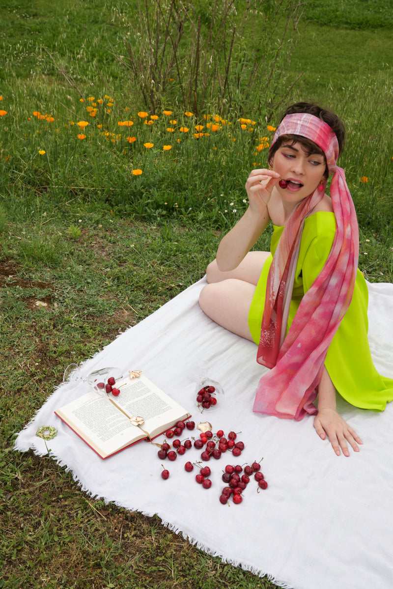 By wearing the Edgar scarf, you envelop yourself in a visual symphony, a celebration of movement and impressionist aesthetics. It's a piece that transcends the simple fashion accessory to become a living expression of art, connecting the wearer to Edgar Degas's timeless legacy and the evocative magic of dance and nature.