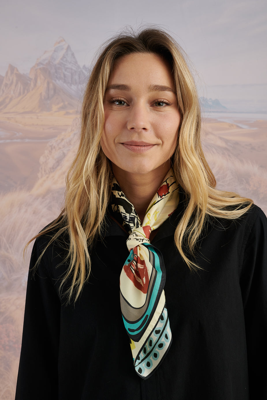 Experience subtle radiance with our 100% silk scarf, measuring 65 x 65 cm. Its luxurious texture and practical size add a touch of elegance to your outfits, perfect for a chic and modern style.
